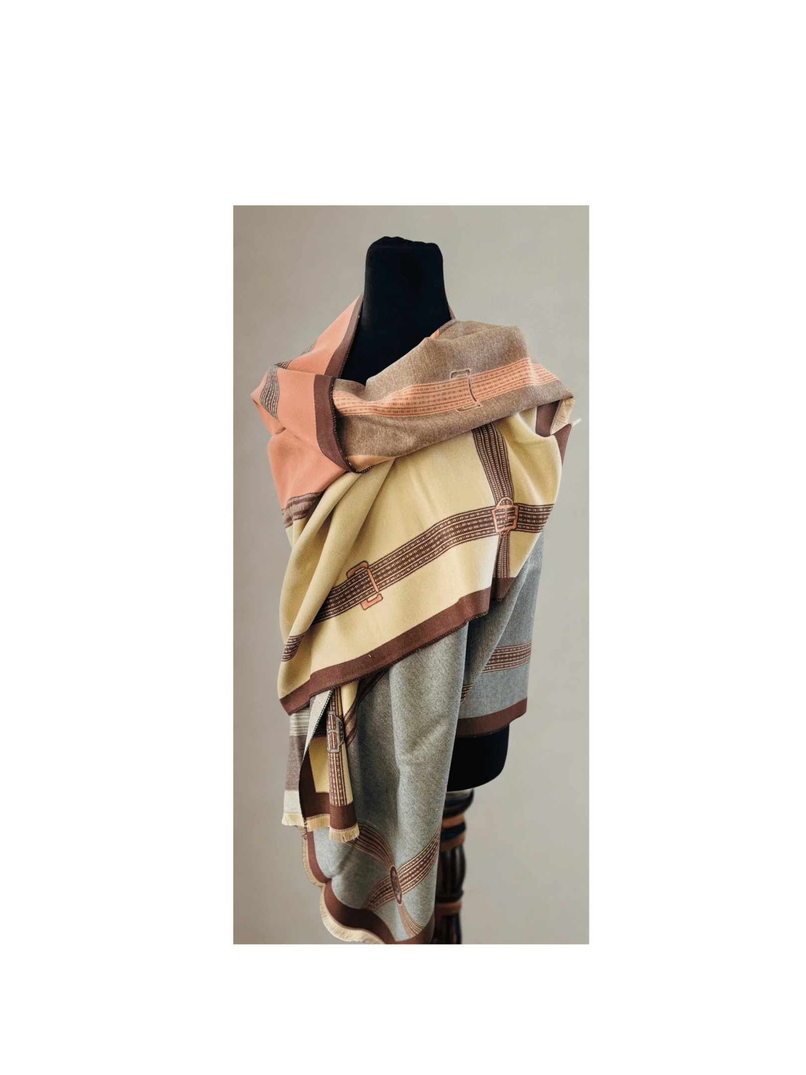 25X74 INCH BELT AND PINK AND BROWN CASHMERE FEEL SCARF