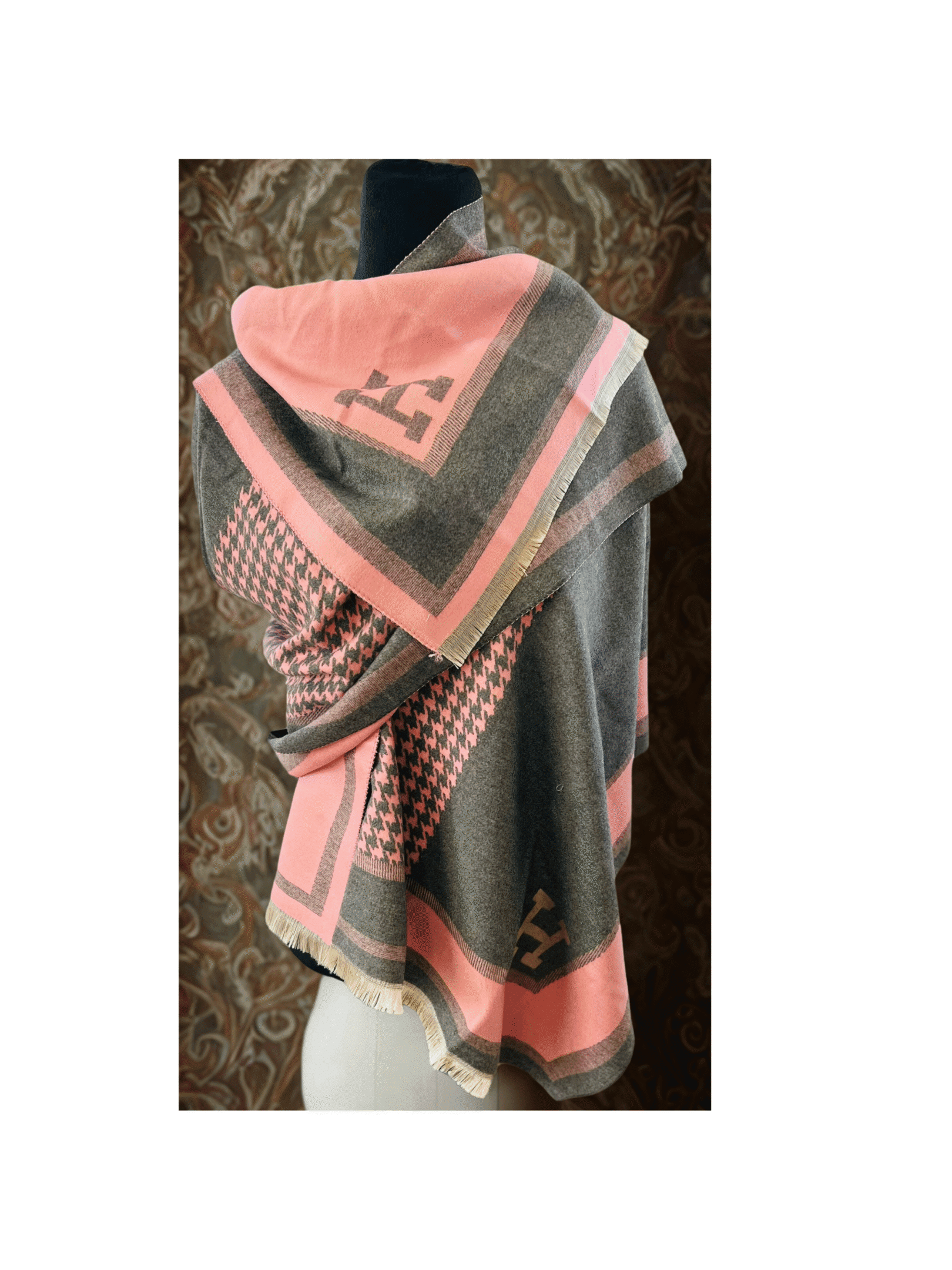 A stylish and cozy scarf featuring a harmonious blend of pink and grey tones. Its warm and soft fabric is ideal for layering during chilly days, offering both comfort and fashion-forward appeal.