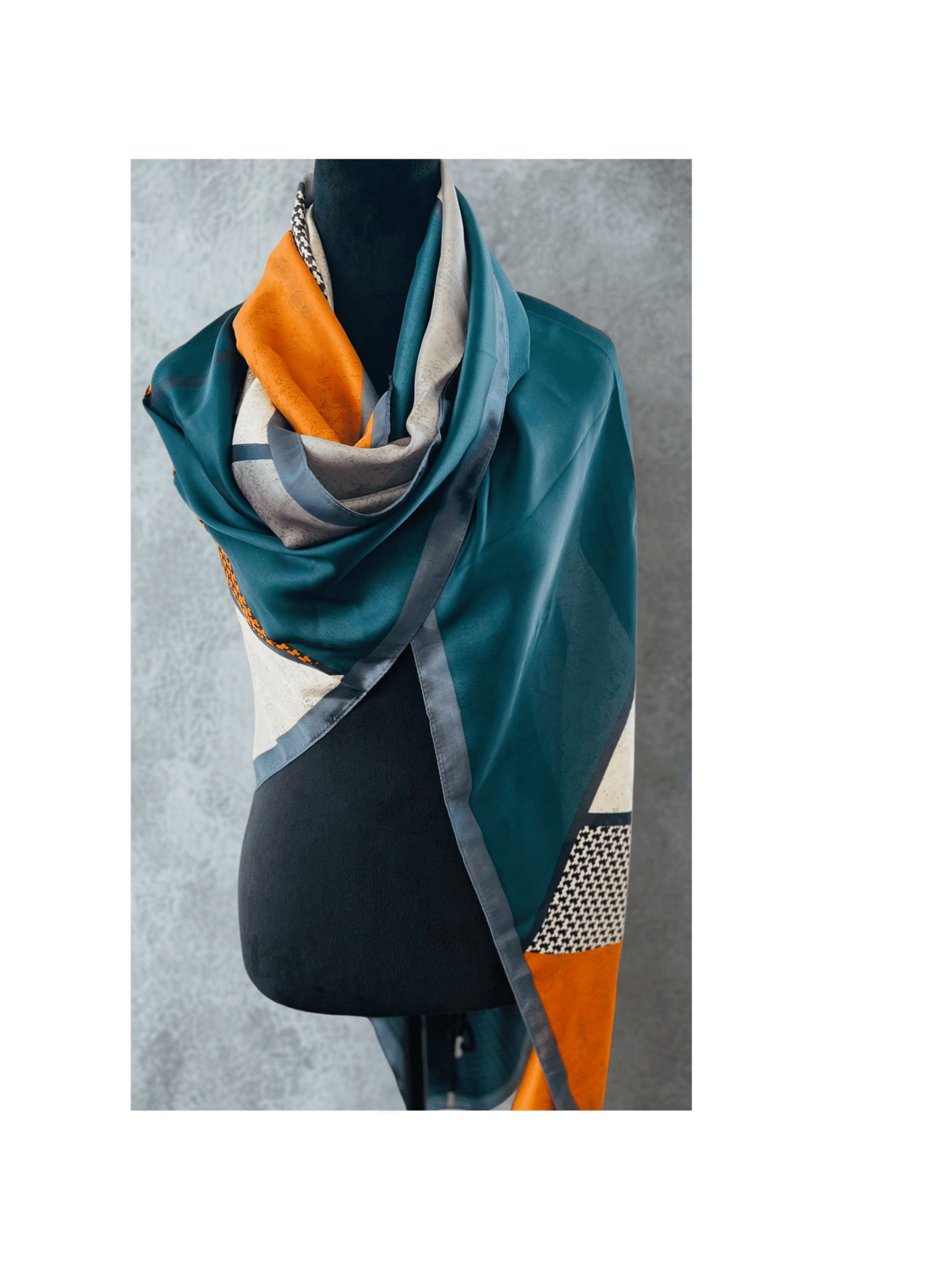 A flowing, lightweight scarf that effortlessly elevates your look. The harmonious orange and green hues add a pop of refined color.
