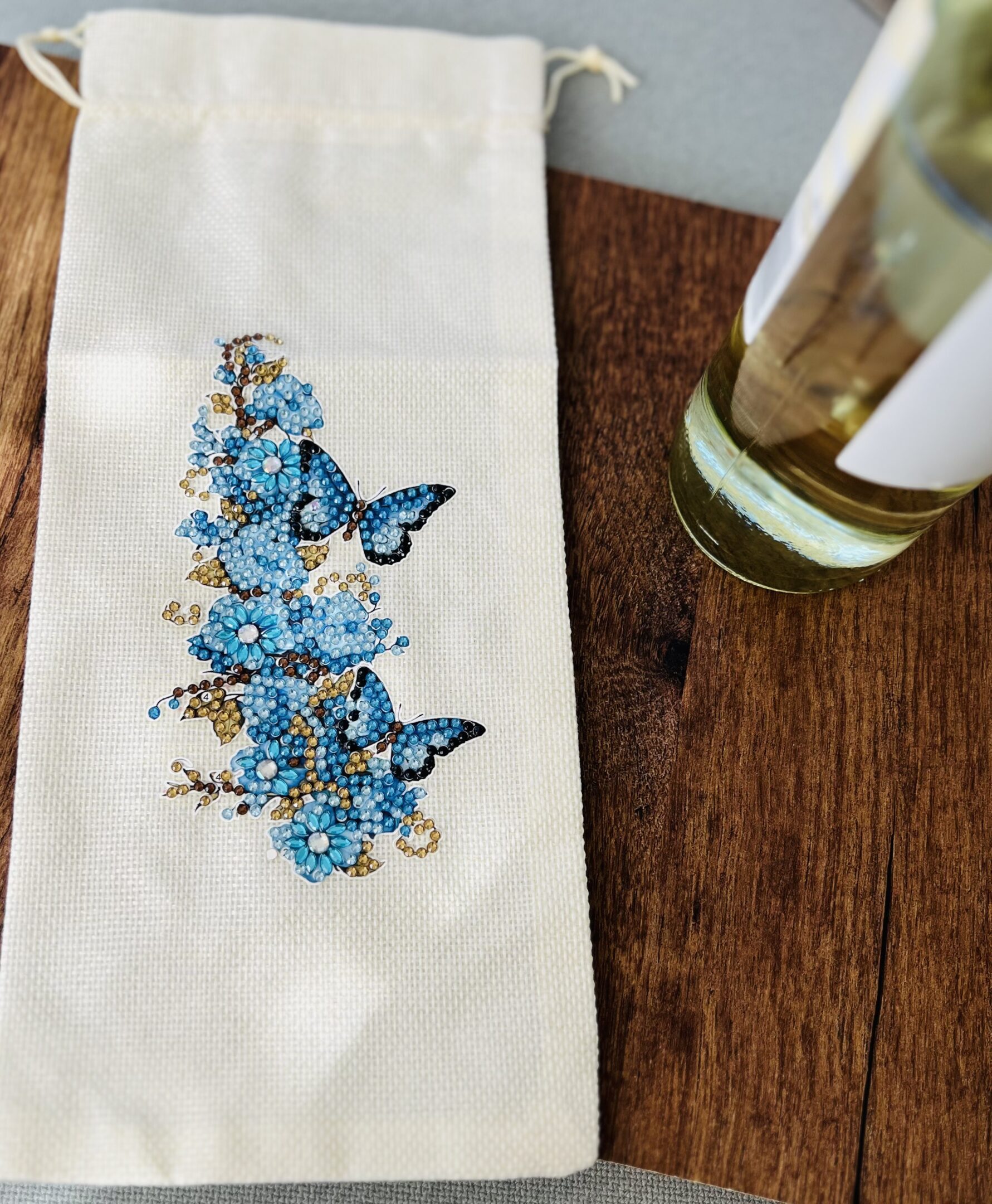 A delicate blend of charm and sophistication, the Cream Butterfly Wine Bag showcases a beautifully detailed butterfly motif with sparkling rhinestone accents. This enchanting design makes it a perfect accessory for wine lovers who appreciate elegance and grace.