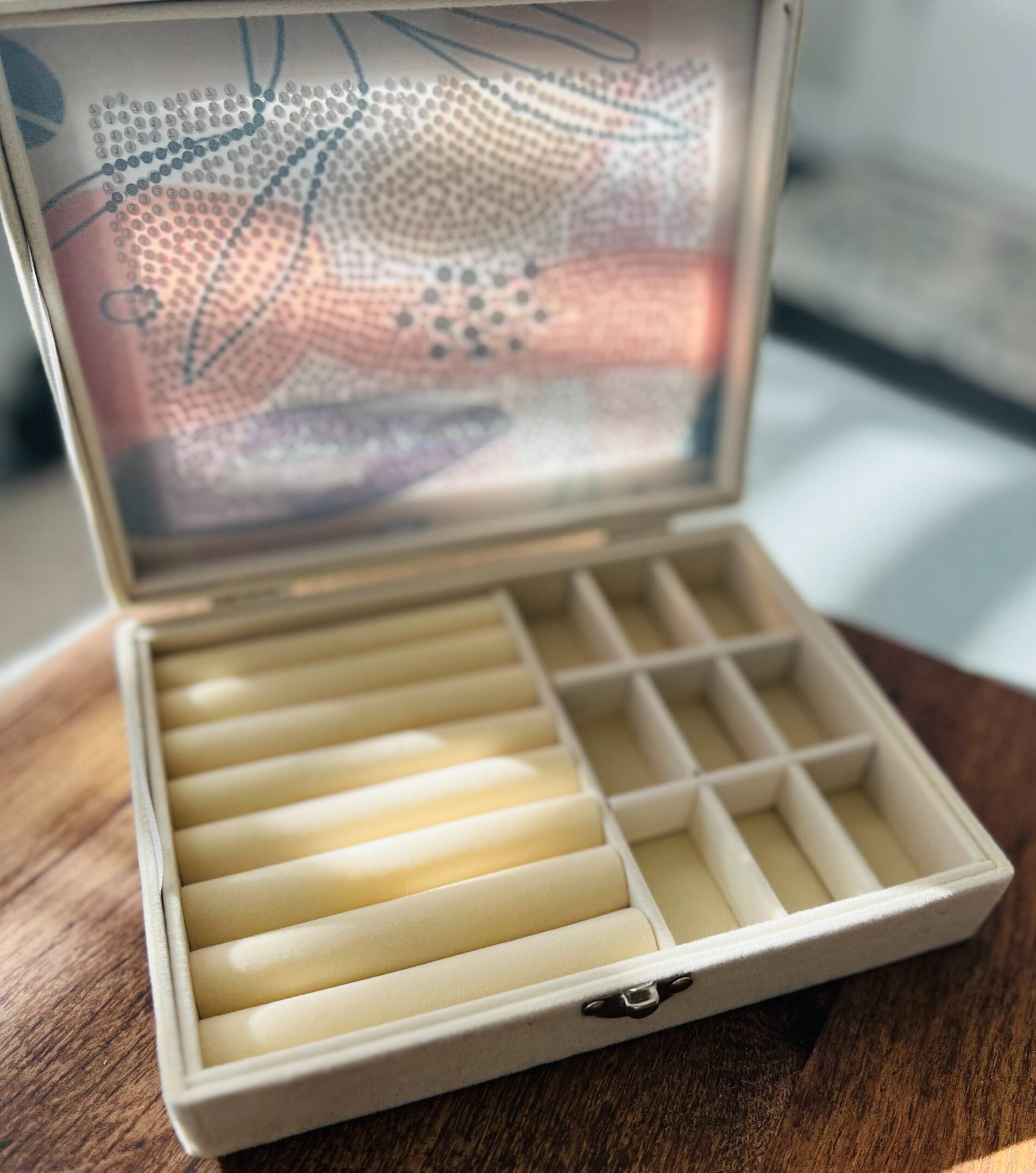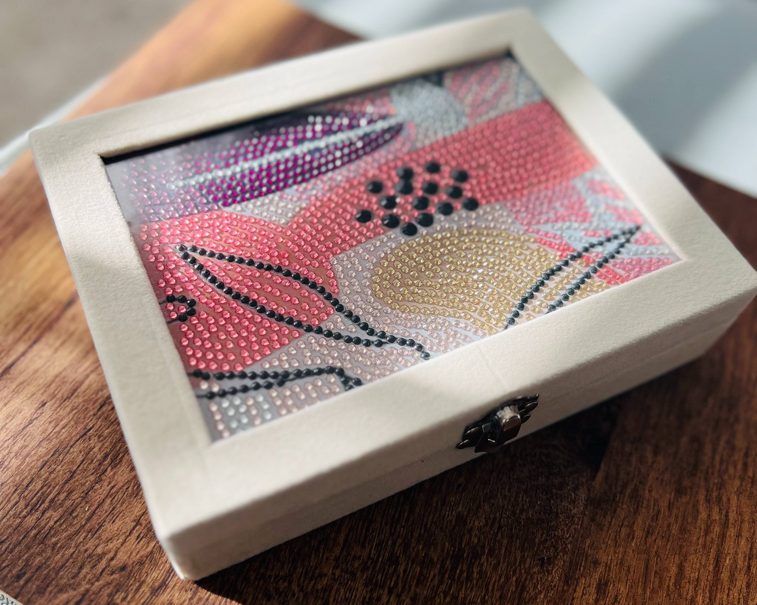 jewelry box features a radiant rhinestone top that catches the light beautifully. The removable tray ensures easy access to your most-worn pieces, making it both a stunning décor piece and a functional organizer for your collection