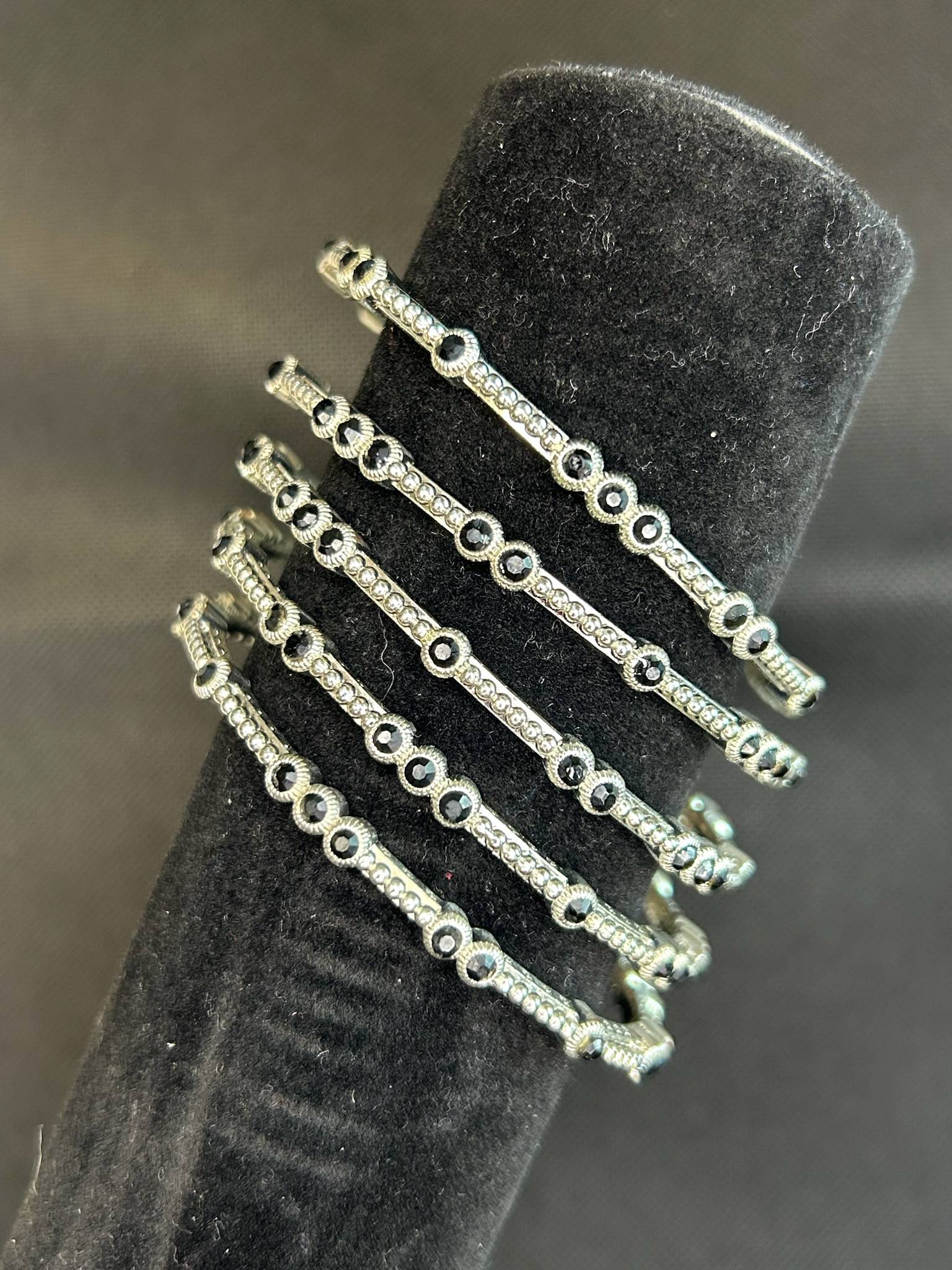 A timeless fusion of sophistication and mystery, this exquisite silver bracelet is adorned with deep black stones, offering a bold yet refined aesthetic. Perfect for elevating both casual and formal looks. Each Sold Separately